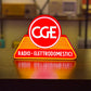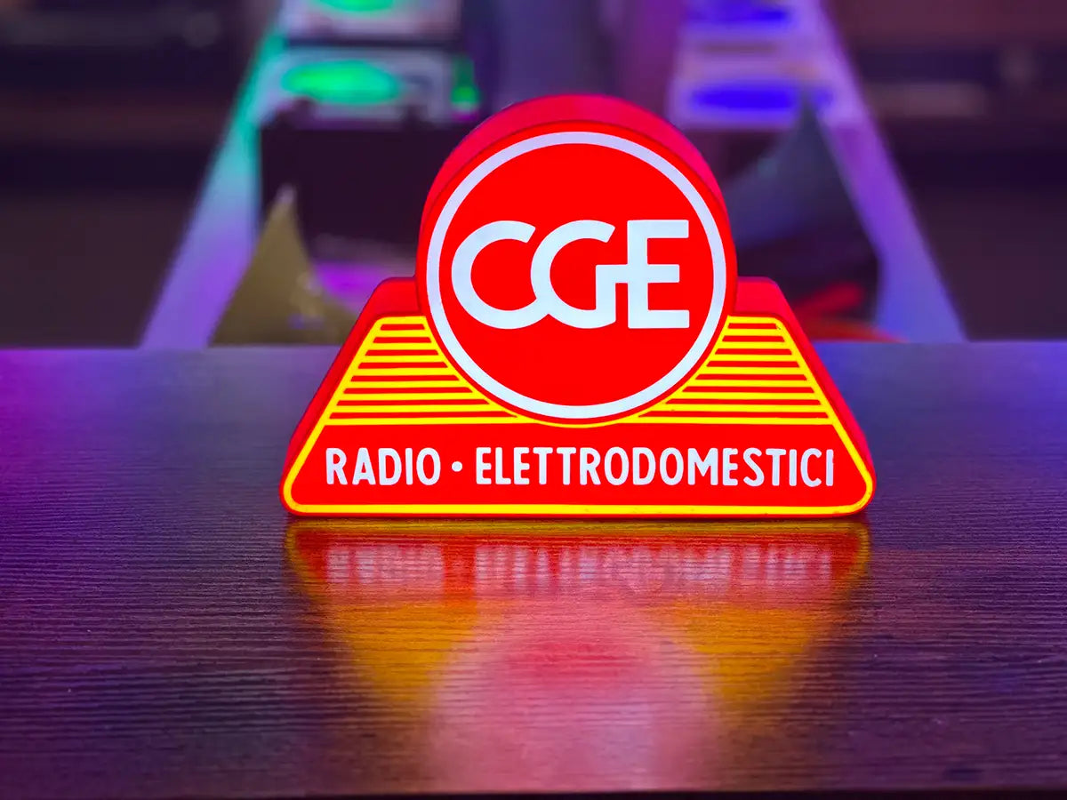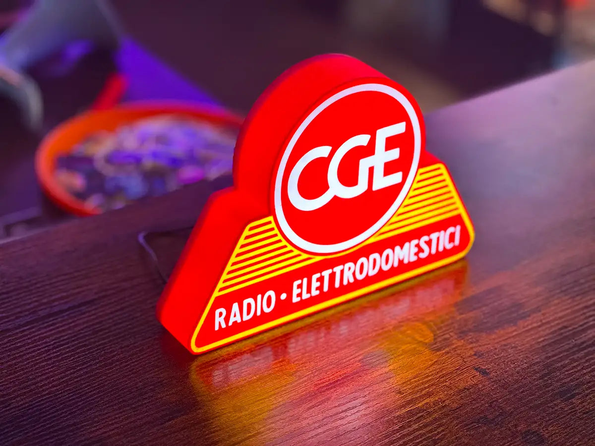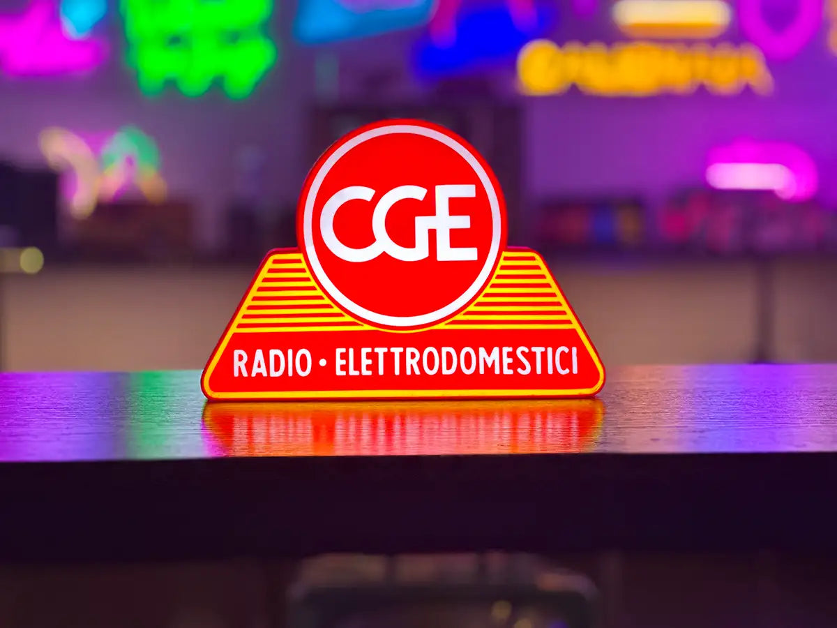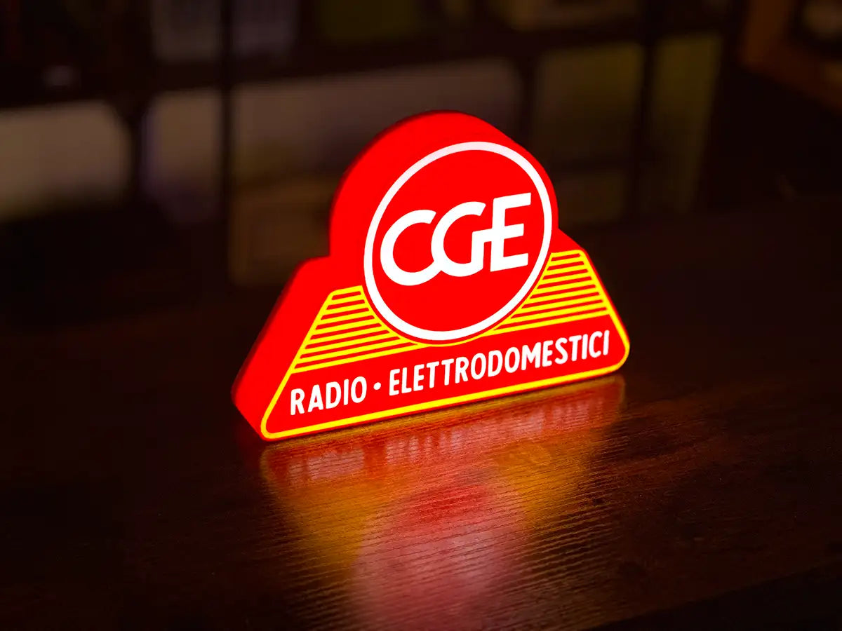 Lightbox con il logo storico CGE – Compagnia Generale di Elettricità, perfetto per collezionisti, amanti del design industriale vintage o per chi vuole dare carattere al proprio spazio.