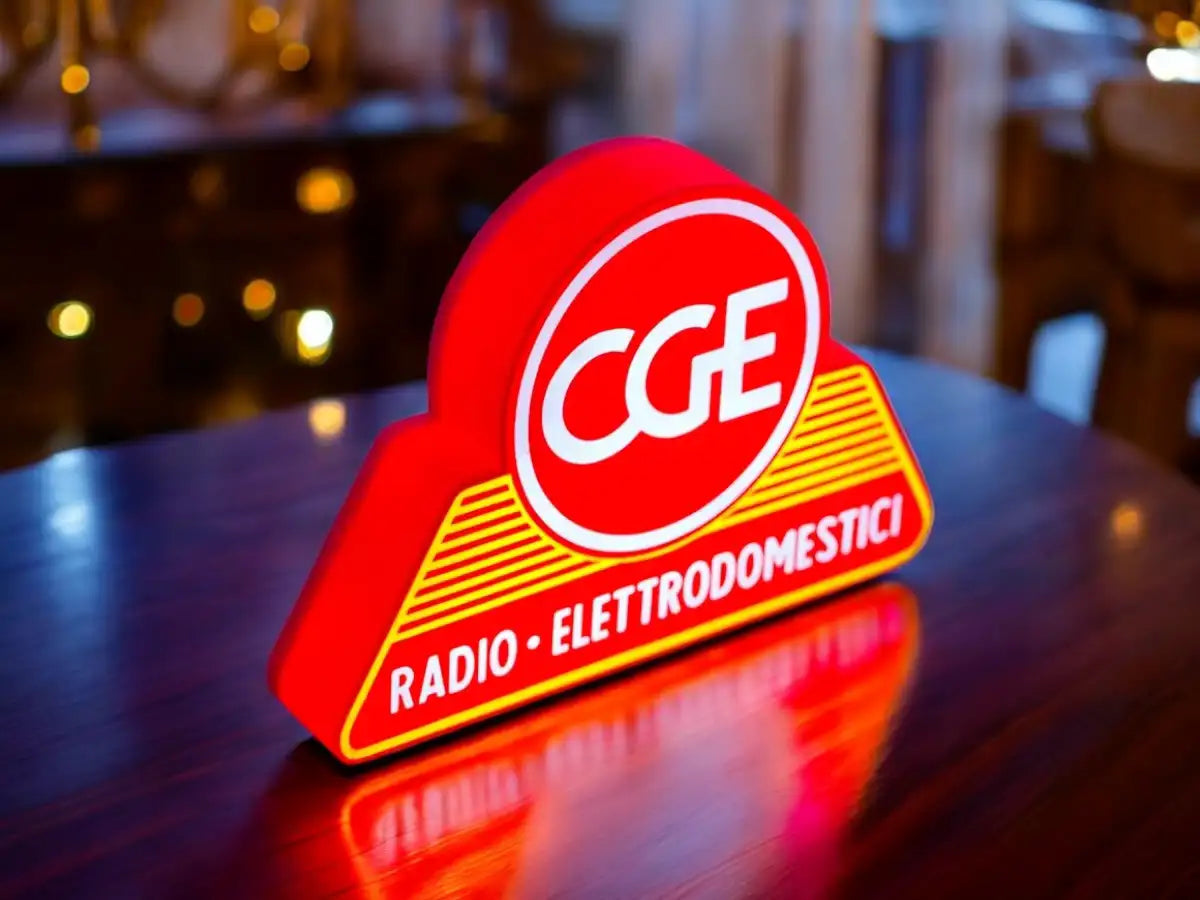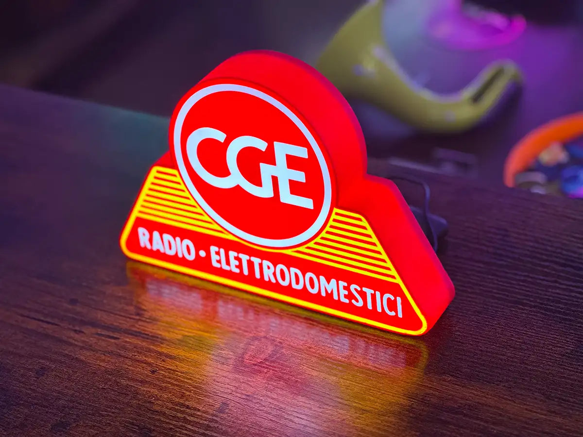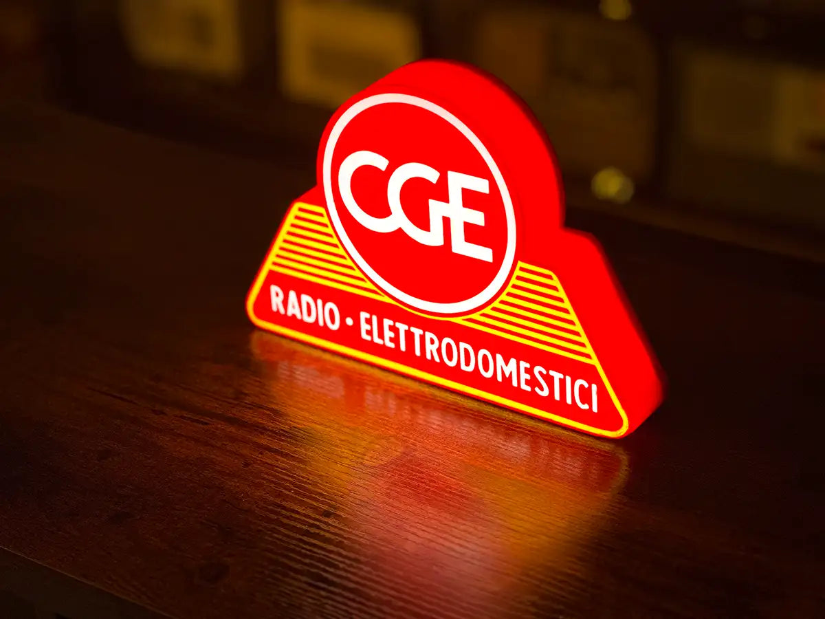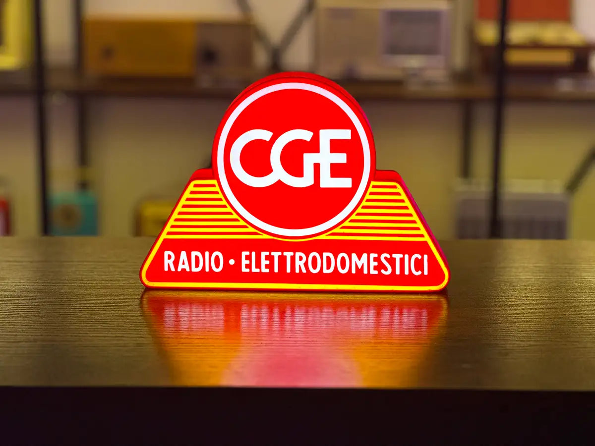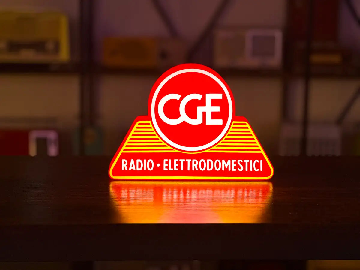 Lightbox con il logo storico CGE – Compagnia Generale di Elettricità, perfetto per collezionisti, amanti del design industriale vintage o per chi vuole dare carattere al proprio spazio.
