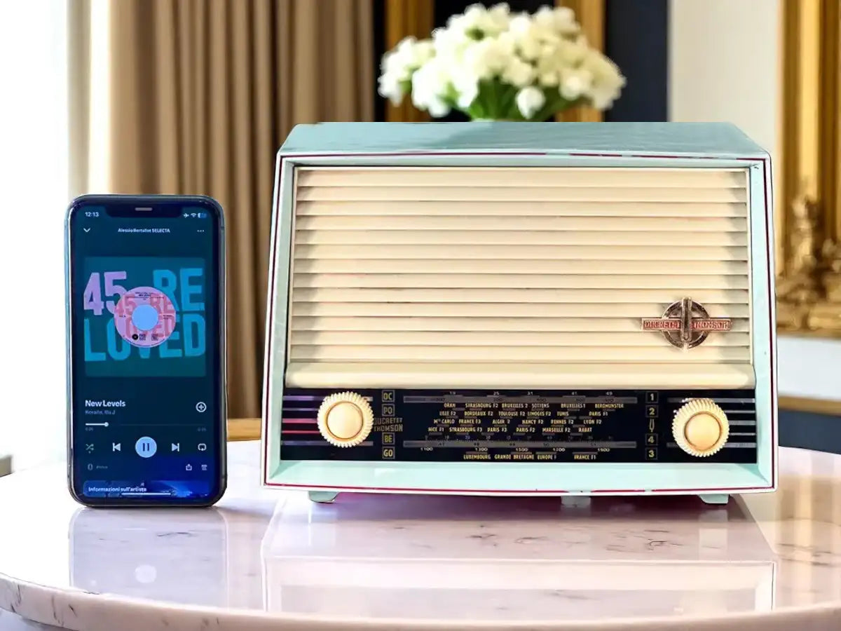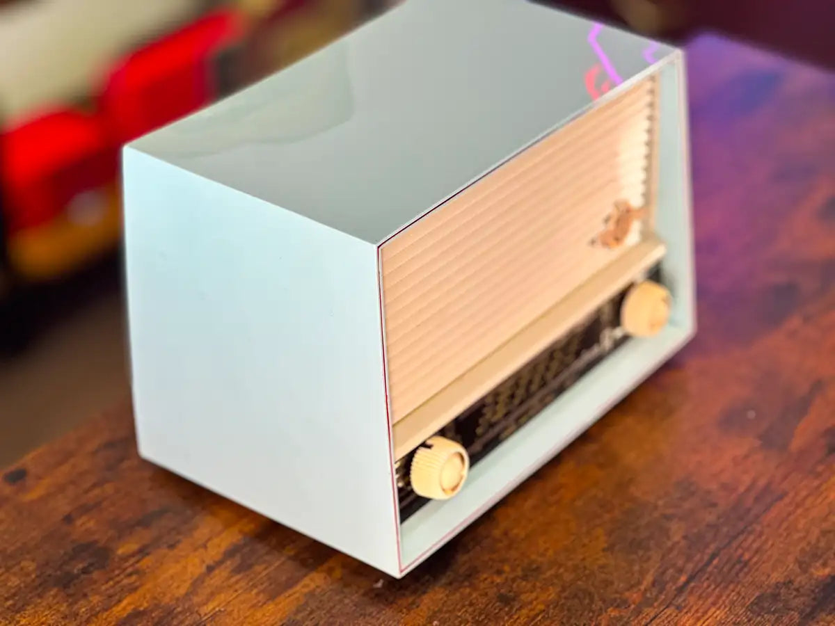 IL SUONO CHE TI DISTINGUE. Un suono caldo, vintage e avvolgente, che si differenzia dai moderni speaker. Quando lavoriamo su una radio eseguiamo una completa revisione all’altoparlante originale. Questo perché il nostro obiettivo è avere un audio unico che si distingua per carattere, timbro, intensità. Ci piace l'idea di far rivivere la “voce” originale di ogni radio, elevandola all'ennesima potenza.