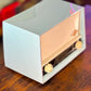 RADIO D'EPOCA CONVERTITA IN SPEAKER BLUETOOTH. Modello prodotto a Parigi nel 1958. Struttura plastica color azzurro pastello tendente al verde. Presenta minimi segni del tempo come da foto, raccontano e testimoniano l'autenticità dell'oggetto. Dimensioni: 26 cm x 17 cm, profondità 15 cm.