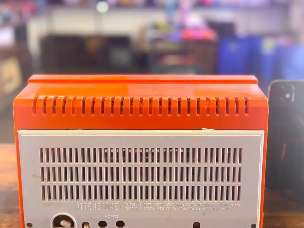RADIO D'EPOCA CONVERTITA ESCLUSIVAMENTE IN SPEAKER BLUETOOTH. Modello Elettrodin Cora r4 del 1960. Struttura colo arancio con frontale bianco. Presenta minimi segni del tempo, raccontano e testimoniano l'autenticità del pezzo. Dimensioni 27 cm x 16 cm, profondità 13 cm.