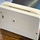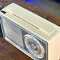 RADIO D'EPOCA CONVERTITA ESCLUSIVAMENTE IN SPEAKER BLUETOOTH. Modello Geloso Orione del 1961. Prodotta a Milano. Struttura in bachelite color bianco panna. Accensione e volume da manopola originale. Dimensioni: 22 cm x 14 cm, profondità 7 cm.