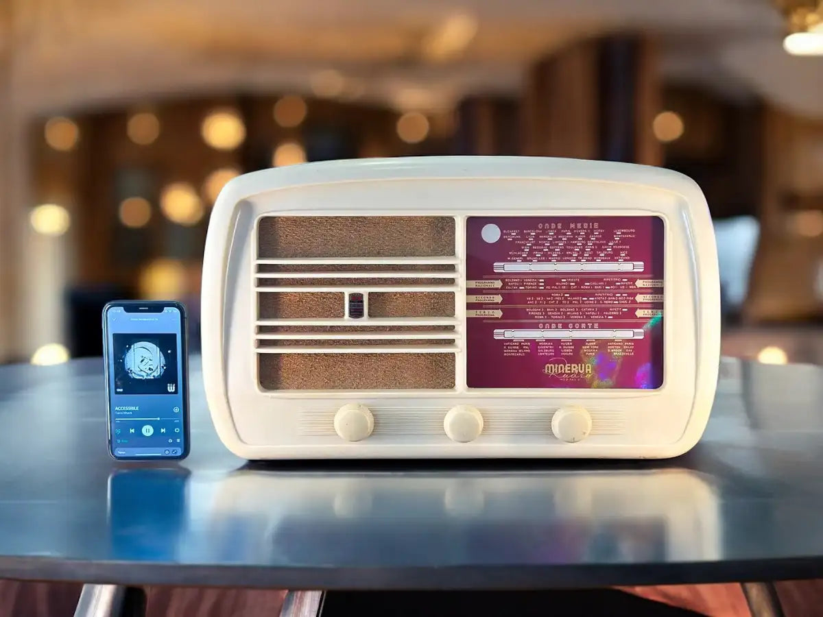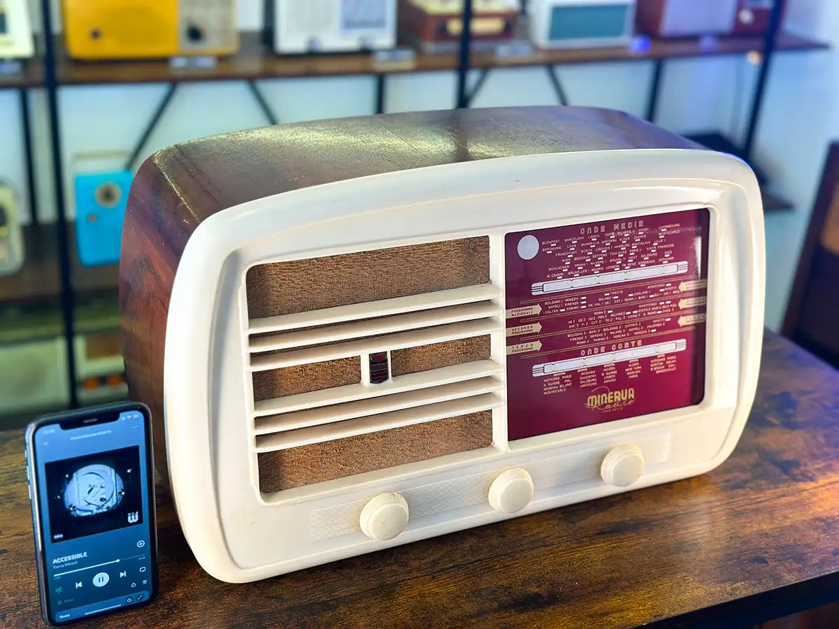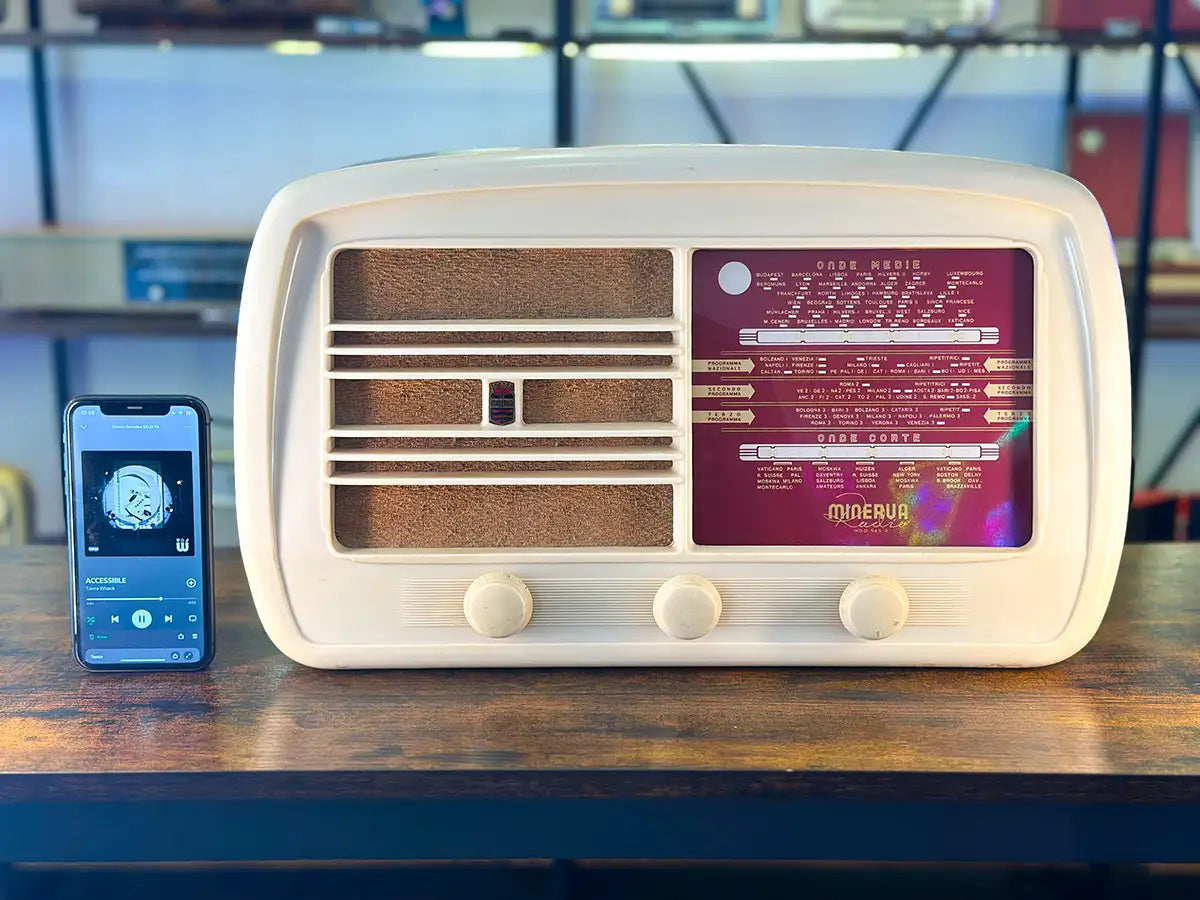 PIENO RISPETTO DEL VALORE STORICO. La nostra missione è preservare il valore storico dell'oggetto mentre le rendiamo più funzionali per l’era moderna. Manteniamo con orgoglio i componenti originali all’interno di ogni radio durante la trasformazione in altoparlante Bluetooth. Questa decisione è un tributo alla storia di ogni pezzo e garantisce che l’autenticità rimanga intatta. Inoltre, ci teniamo a sottolineare che la nostra modifica è non invasiva e totalmente reversibile.
