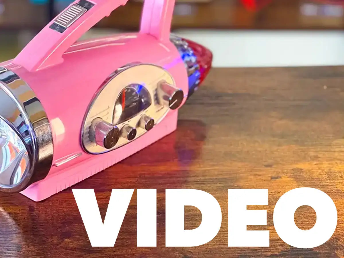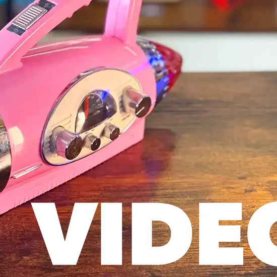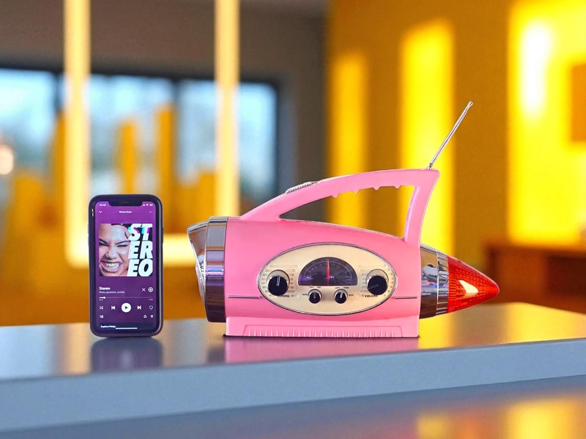 RADIO D'EPOCA CONVERTITA ESCLUSIVAMENTE IN SPEAKER BLUETOOTH. Modello Wing Radio del 1986. Raro esemplare eccentrico ispirato al design Cadillac degli anni '50. Dimensioni approssimative: 30 cm x 20 cm, profondità 7 cm.